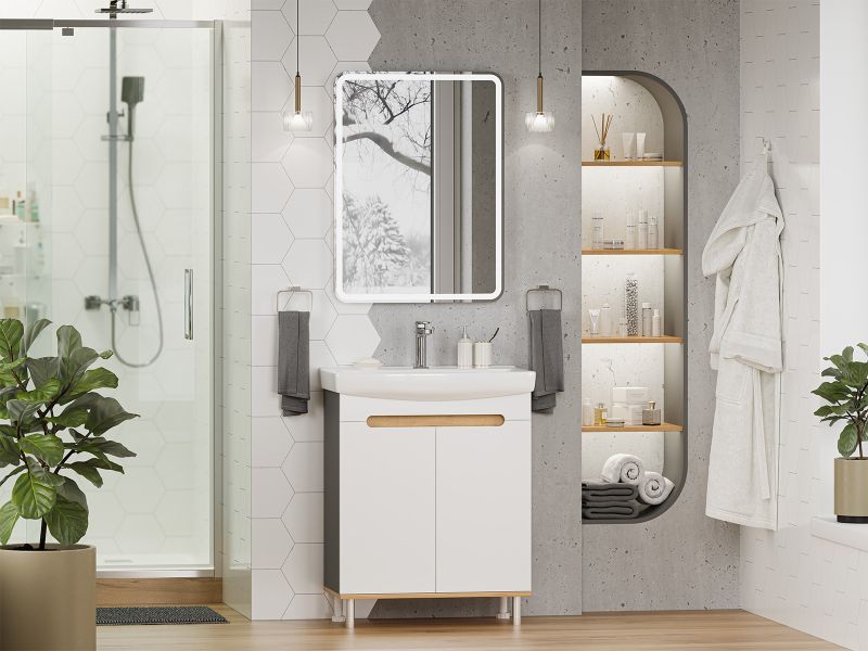 Напольная тумба под раковину Misty Сканди 70см белый/дуб крафт золотой/антрацит купить