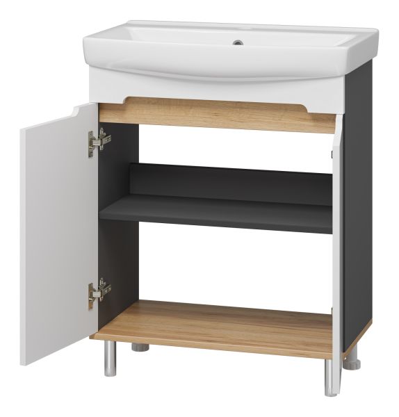 Напольная тумба под раковину Misty Сканди 70см белый/дуб крафт золотой/антрацит