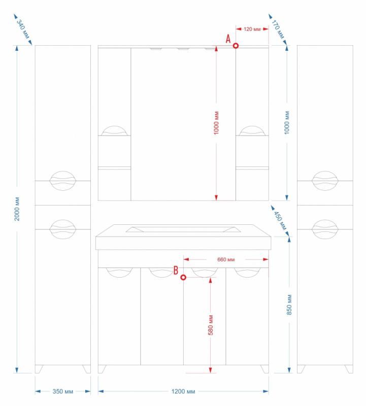 3. Пеналом (с возможностью как левого, так и правого исполнения) для хранения полотенец и халатов в двух отделениях с дверками, нижнее из которых при желании можно оборудовать корзиной для белья. Для хранения мелких предметов имеется пара выдвижных ящиков.