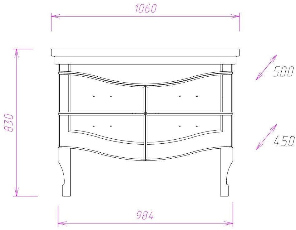 Размеры тумбы без учета раковины и ножек: 98х45х54 см.