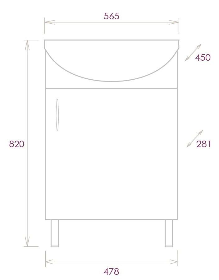 Размеры тумбы без учета раковины и ножек 48x28x68 cм.