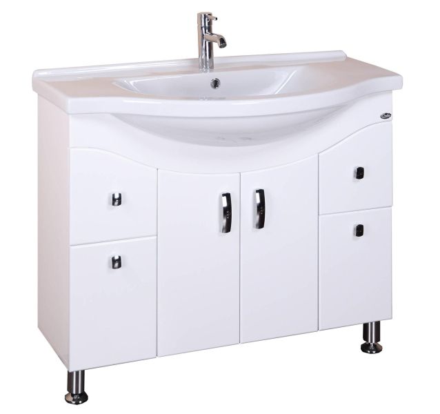 В тумбе Onika Эльбрус 90 белоснежный глянец фасада подчеркивается оригинальной хромированной фурнитурой и сложной изысканной геометрией линий.