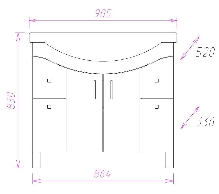 Размеры тумбы без учета раковины и ножек 86x34x68 cм.