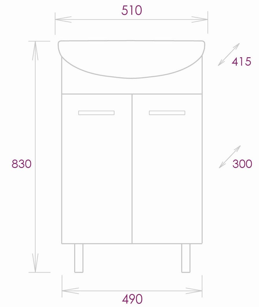 Размеры тумбы без учета раковины и ножек: 49х30х68см.