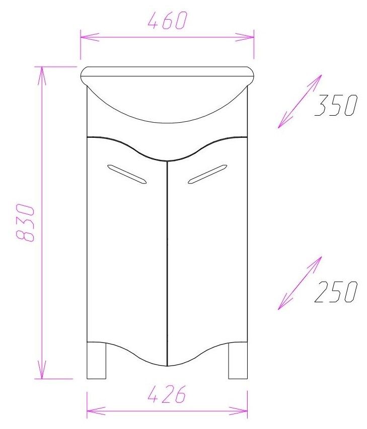 Размеры тумбы без учета раковины и ножек 43х25х75 см.