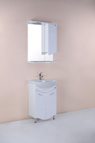 Элегантная напольная белая глянцевая тумба Onika Лайн 55 - выгодное решение для оптимизации ванной комнаты.