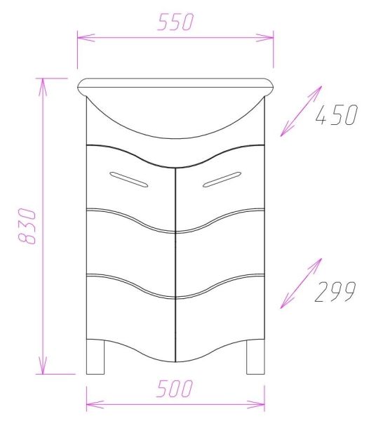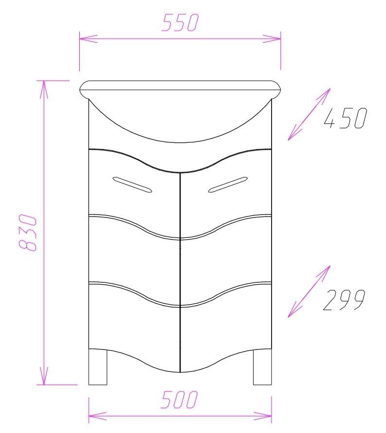 Размеры тумбы без учета раковины и ножек 50х30х75 см.