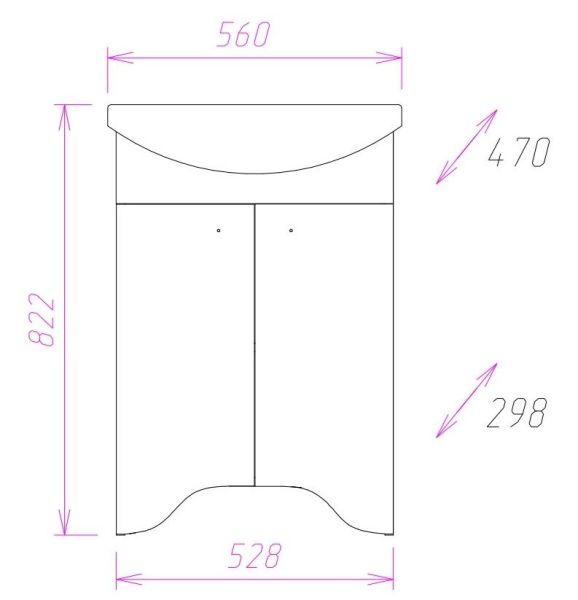 Тумба максимально удобна в использовании: две распашные дверцы скрывают пространство для хранения, разделенное горизонтальной полкой и позволяющее компактно разместить бытовые принадлежности.