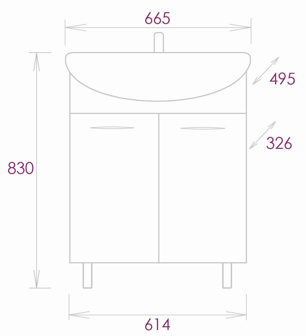 Размеры тумбы без учета раковины и ножек 61x33x68 cм.