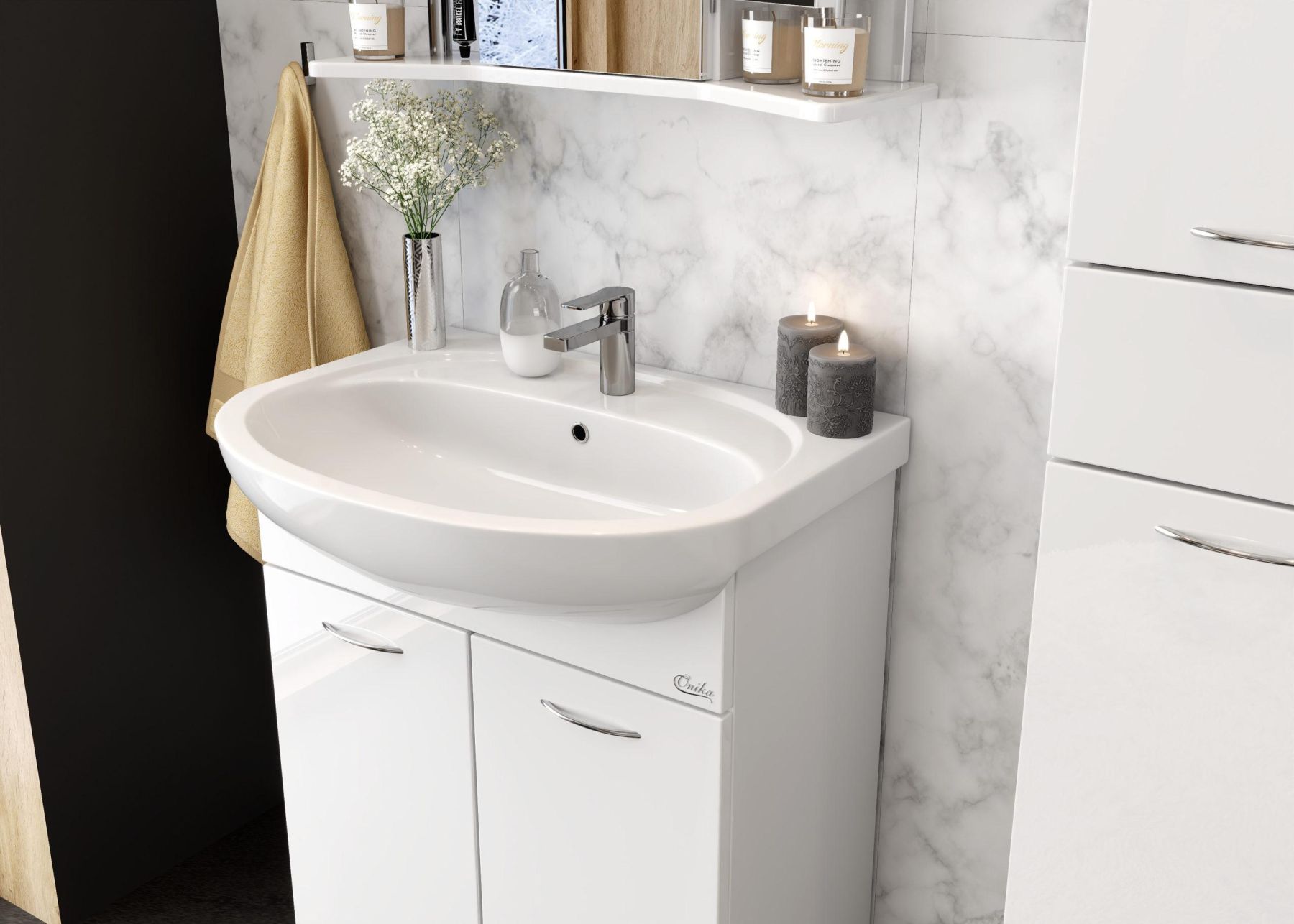 Тумба Onika Стелла 65 - достойный пример удобной мебели для небольшой ванной комнаты.