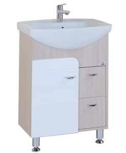 В оригинальной напольной тумбе Onika Стиль 60 удачно сочетаются контрастные цвета и фактуры: белый глянец на фоне светлого натурального дерева очень эффектно смотрится практически в любых интерьерах ванной комнаты.
