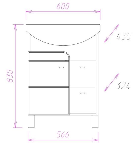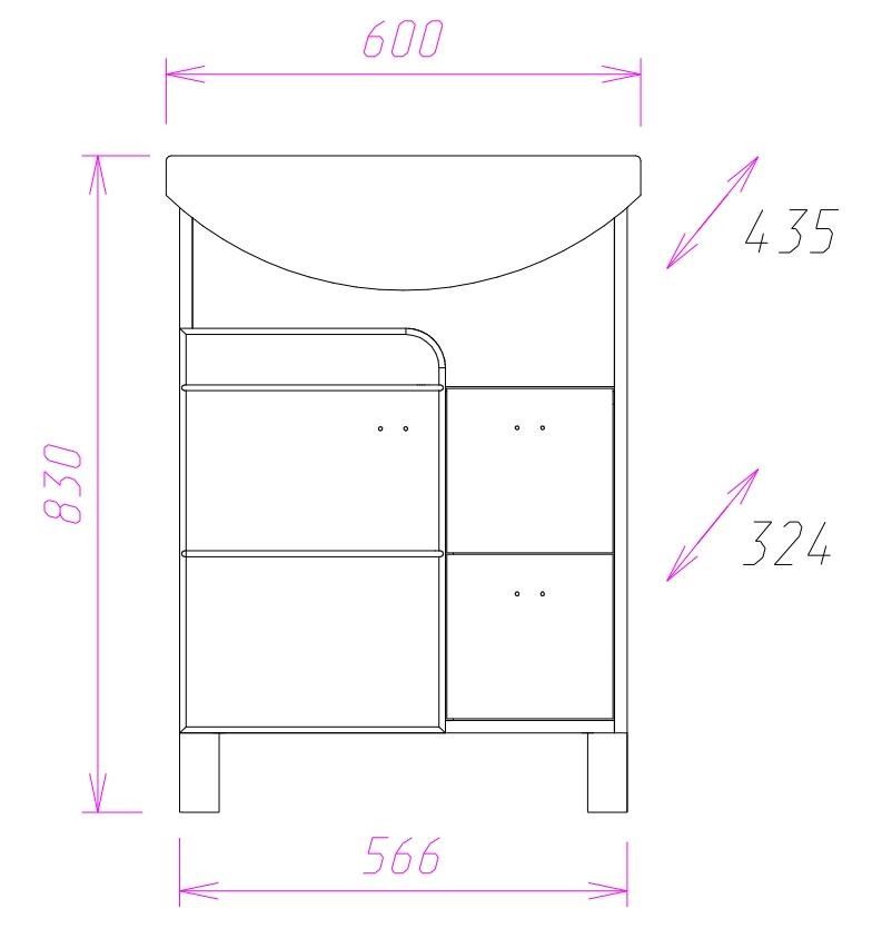 Размеры тумбы без учета раковины и ножек 57x32x68 cм.