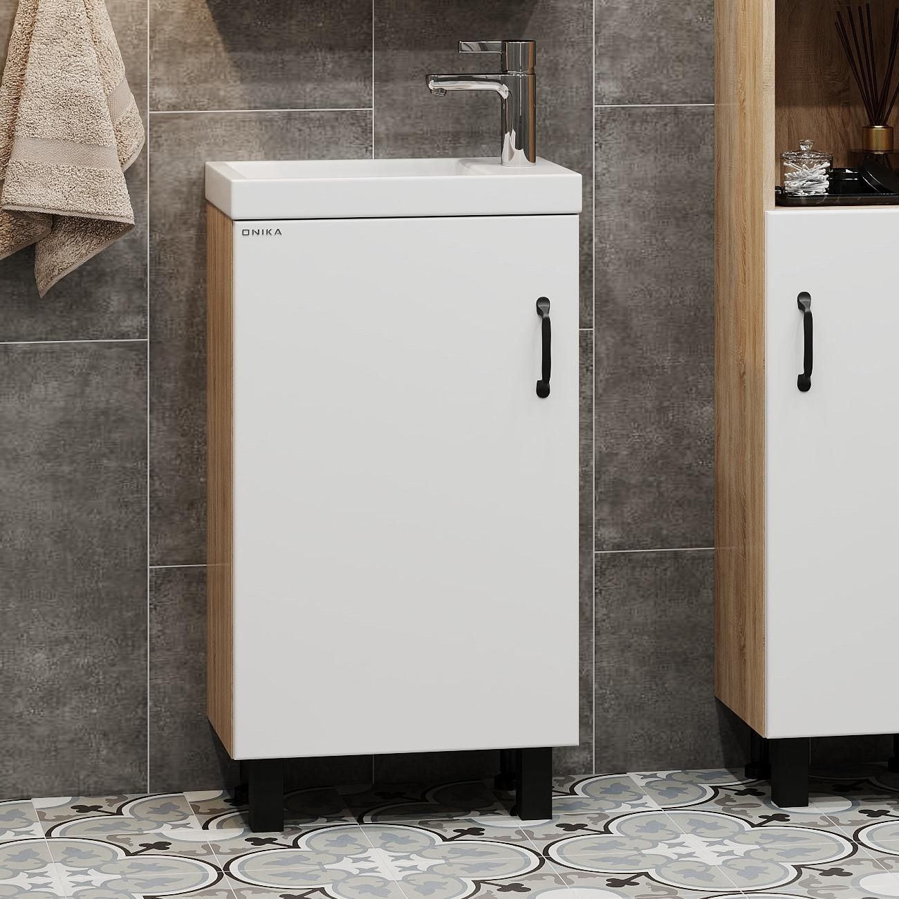 Напольная тумба под раковину Onika Тимбер 104508 45см белый матовый/дуб сонома