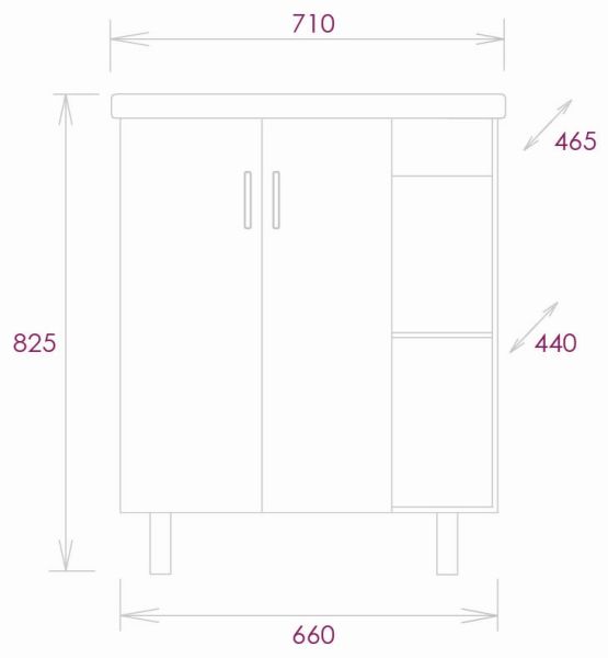 Размеры тумбы без учета раковины и ножек 66x45x68 cм.