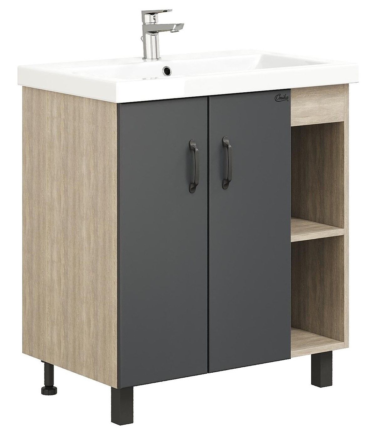 Напольная тумба под раковину Onika Тимбер 107057 70см серый матовый/дуб сонома купить
