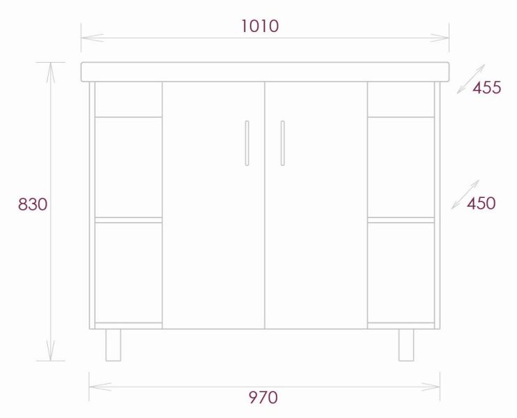 Размеры тумбы без учета раковины и ножек 97x45x68 cм.
