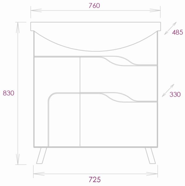 Размеры тумбы без учета раковины и ножек: 72х33х68 см.