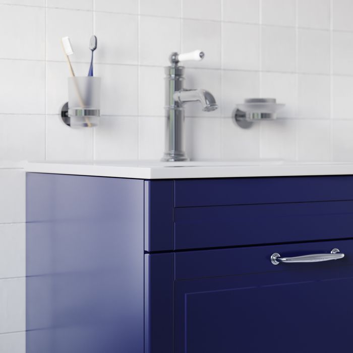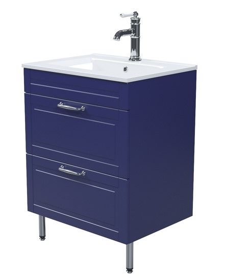 Компактная напольная тумба Oxford в красивом синем оттенке – модное сочетание классического стиля и стиля ретро. Она органично впишется в интерьер благодаря элегантному фрезерованному фасаду и узнаваемому дизайну. В комплекте плоский эргономичный умывальник.