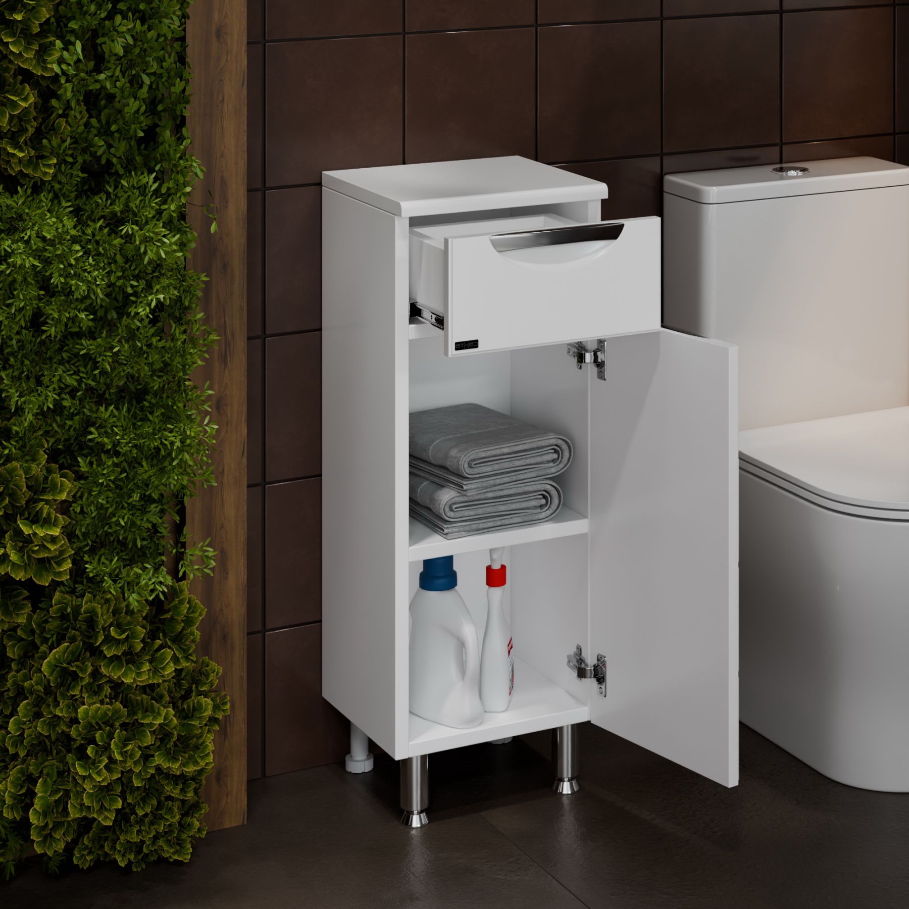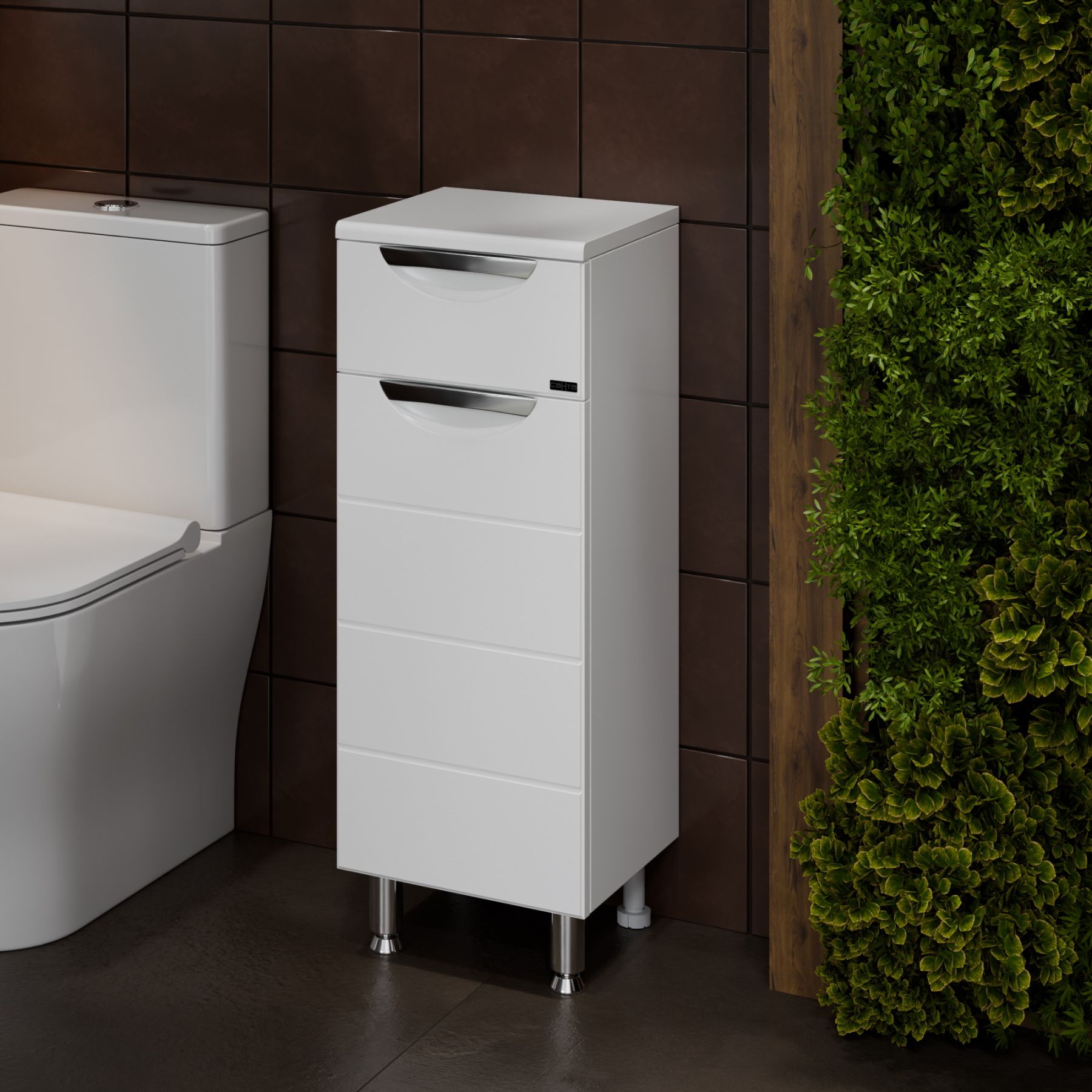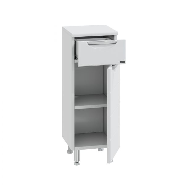 Комплектация: Ручка хром - 2, выдвижной ящик - 1, на дверке петли плавного закрывания, ножка хром - 2, ножка пластик - 2 Тумба напольная СаНта Родос 30 с 1 ящиком напольная предназначена для хранения различных мелочей в ванной комнате. Комод в ванную комнату изготовлен из влагостойких материалов, фасад и столешница комода для ванны изготовлена из МДФ, корпус из влагостойкого ЛДСП. Комод для ванной комнаты оснащен ящиком полного выдвижения ( без плавного закрывания). Ножки у комода для ванны идут в комплекте. Купить комод для ванной комнаты вы можете оформив заказ у нас на сайте. Также вы можете подобрать к комоду тумбу с раковиной из коллекции Родос.