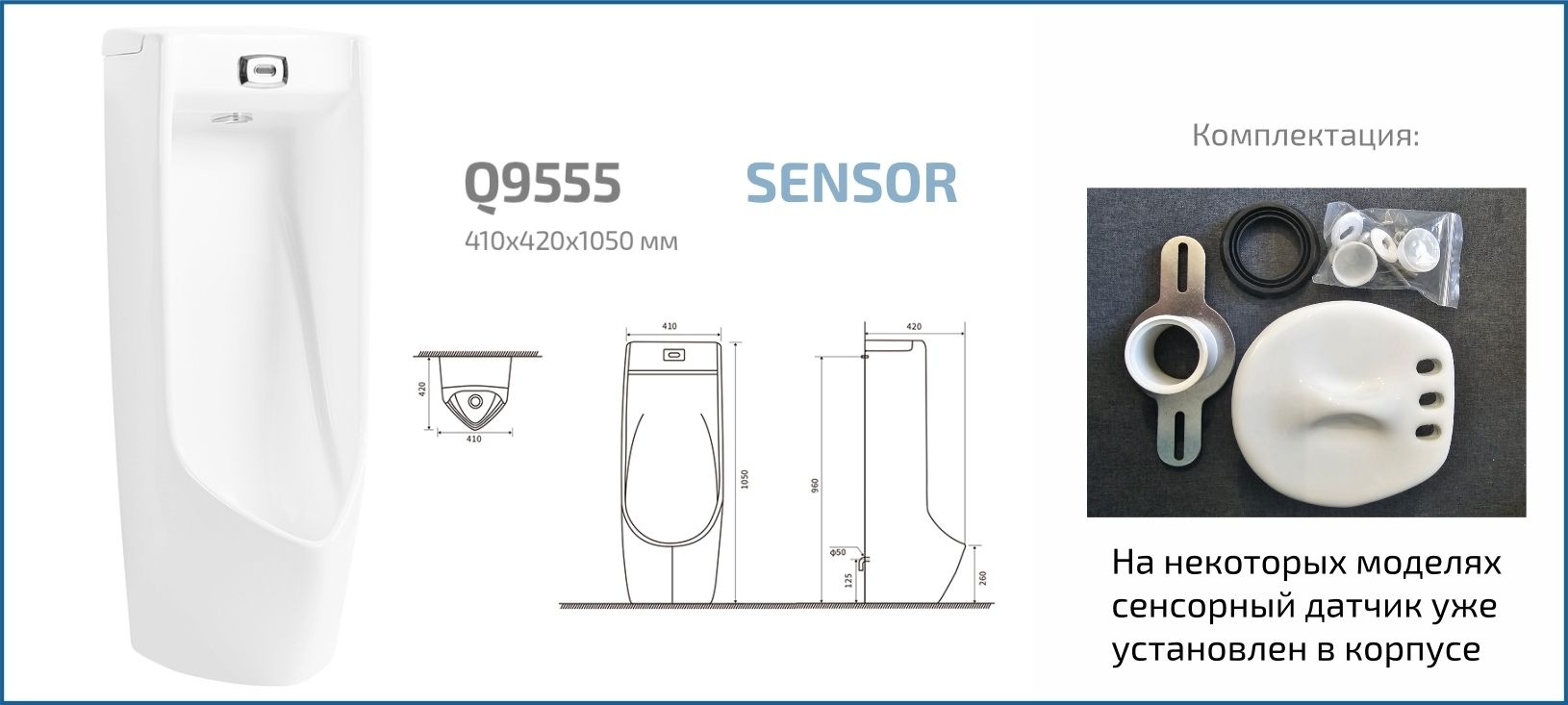 Publico — коллекция писсуаров, выполненная в строгом и лаконичном дизайне. Испанское качество и европейские стандарты соответствуют самым высоким требованиям эксплуатации. Напольный сенсорный писсуар GiD Q9555 оснащен встроенным сенсорным датчиком для автоматической активации слива. Изготовленный из высококачественной керамики белого цвета, он обладает современным дизайном, что позволяет ему гармонично вписаться в различные интерьеры. Писсуар GID Q9555 идеально подходит для современных ванных комнат и общественных санузлов, обеспечивая гигиеничность и удобство использования благодаря автоматическому сенсорному смыву.