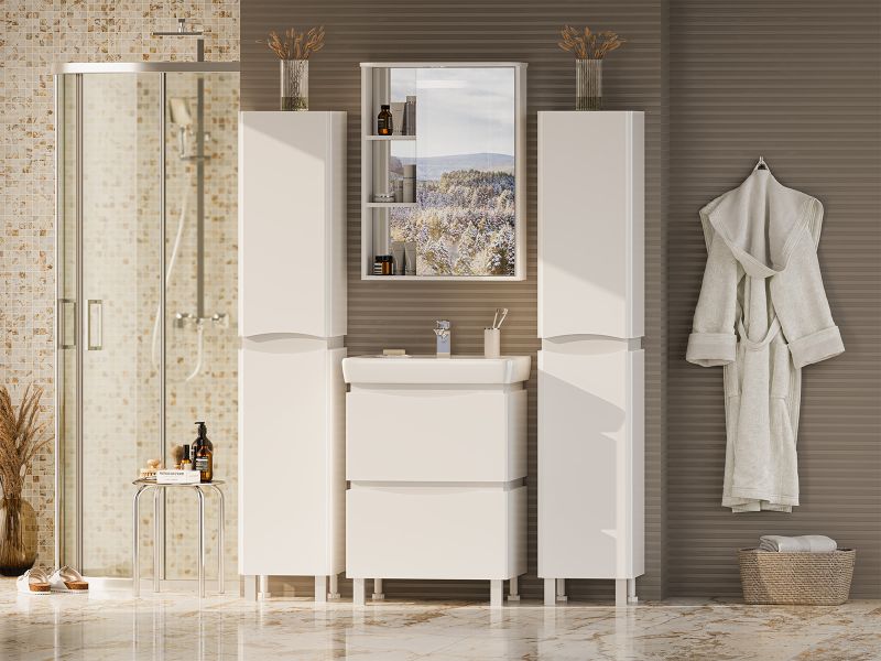 Шкаф-пенал для ванной комнаты – это стильное решение, которое гармонично вписывается в современный интерьер. Его элегантные линии и аккуратные формы создают атмосферу чистоты и порядка, что особенно важно в таком интимном пространстве. Изготовленный из качественных влагостойких материалов, этот шкаф обеспечивает долговечность и надежность, даже в условиях повышенной влажности.Основное преимущество шкаф-пенала заключается в его вместительности. Удобные полки и ящики позволяют организовать пространство и разместить все необходимое: от косметики до бытовых принадлежностей. Каждая деталь продумана для удобства использования, что делает утренние и вечерние ритуалы более приятными.Будь то строгий минимализм или уютный скандинавский стиль, шкаф-пенал станет акцентом, который подчеркивает индивидуальность вашего пространства. Не упустите возможность преобразить свою ванную комнату, добавив в нее этот элегантный и практичный элемент.