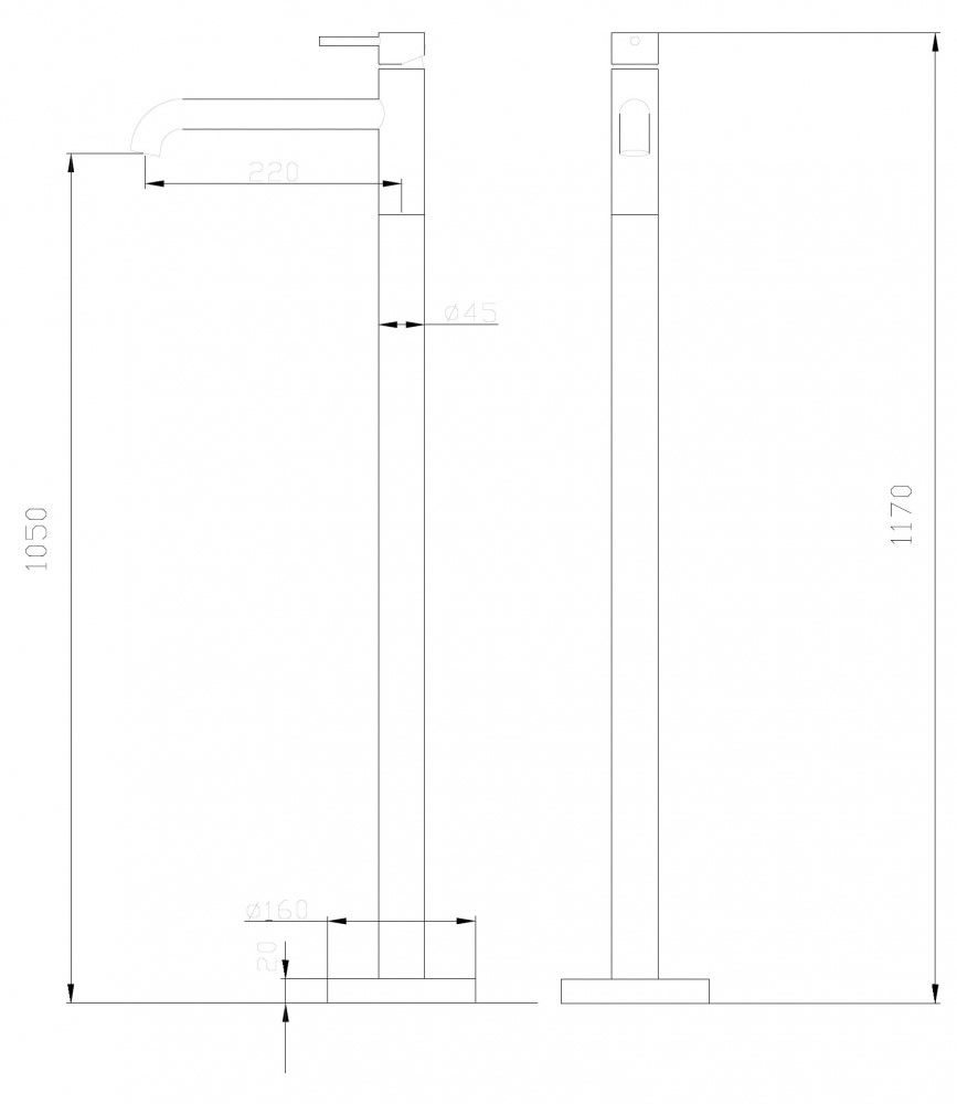• Высота смесителя: