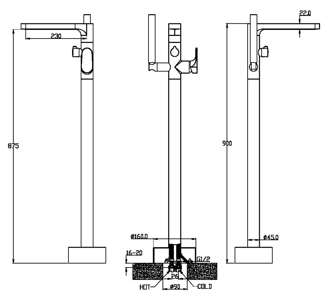 Смеситель для ванны Boheme Spectre 459-BR напольный.Характеристики: