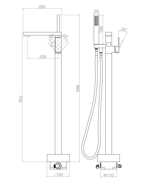 Напольный смеситель для ванны DQ Bayern.Liszt DA1516005 чёрный