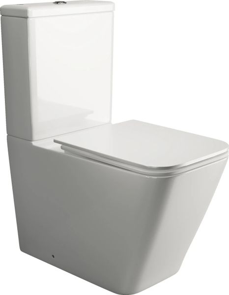 Напольный пристенный унитаз с бачком Cubic Rimless, двойной смыв 3/6, нижняя подводка глубокий смыв, горизонтальный (универсальный) выпуск, с крепежом, ультра тонким сидением с функцией плавного закрытия, дюропласт