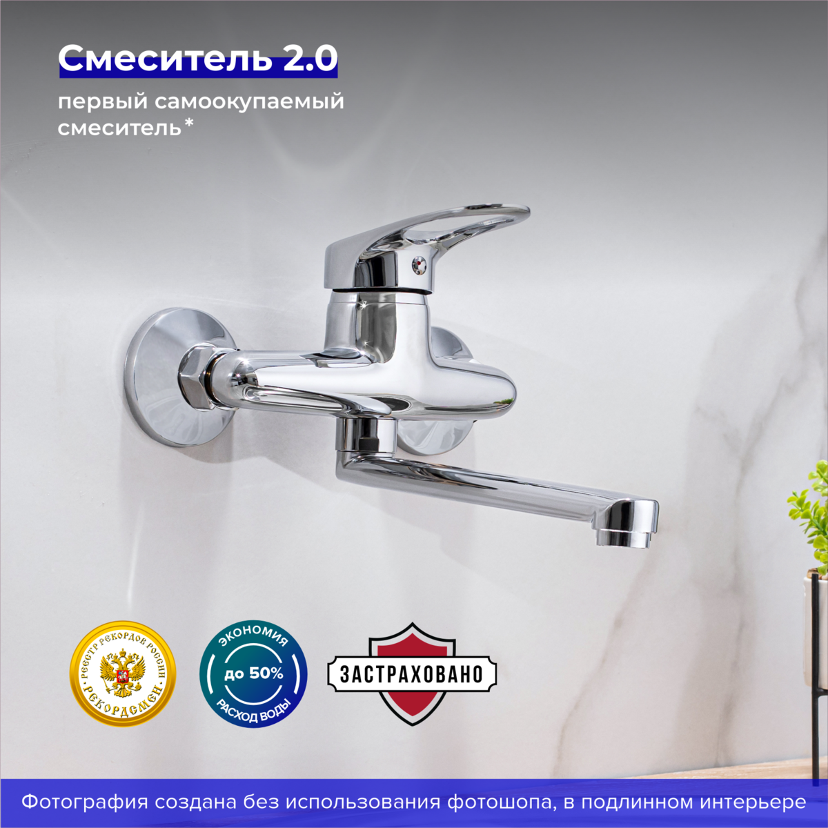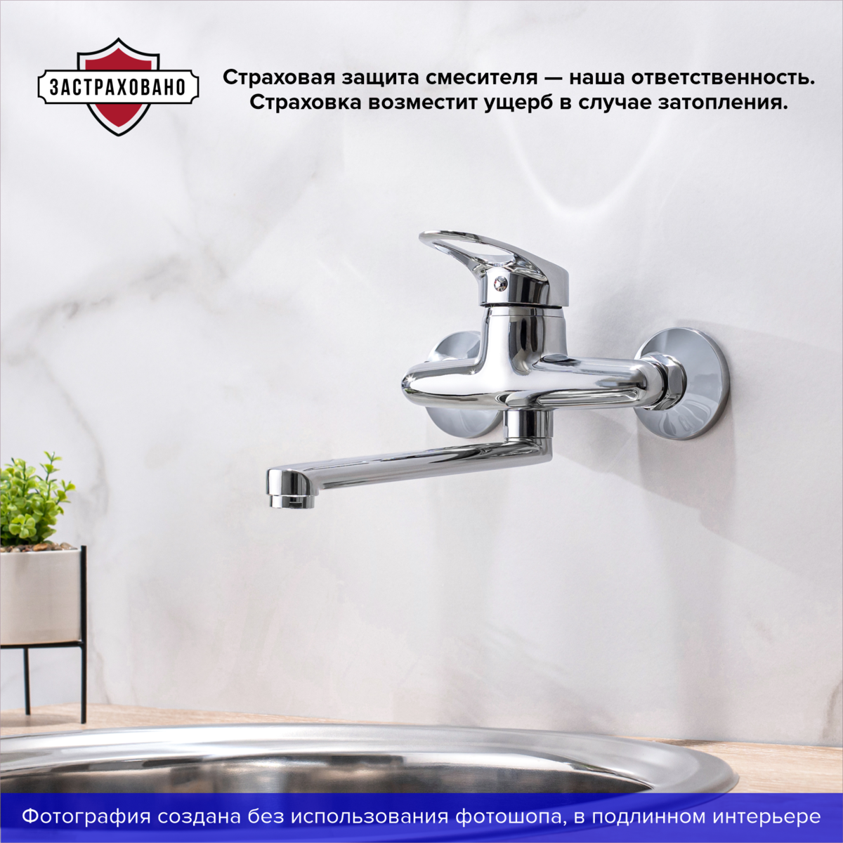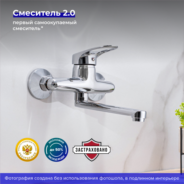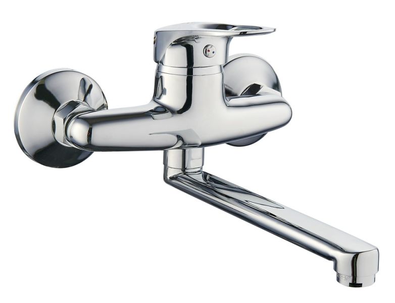 Настенный смеситель для кухни с длинным поворотным изливом — функциональный и стильный элемент интерьера.