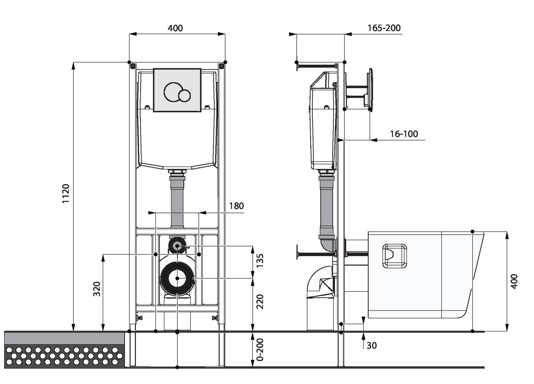 - Габариты инсталляции (ДШВ): 20x40x112 см.