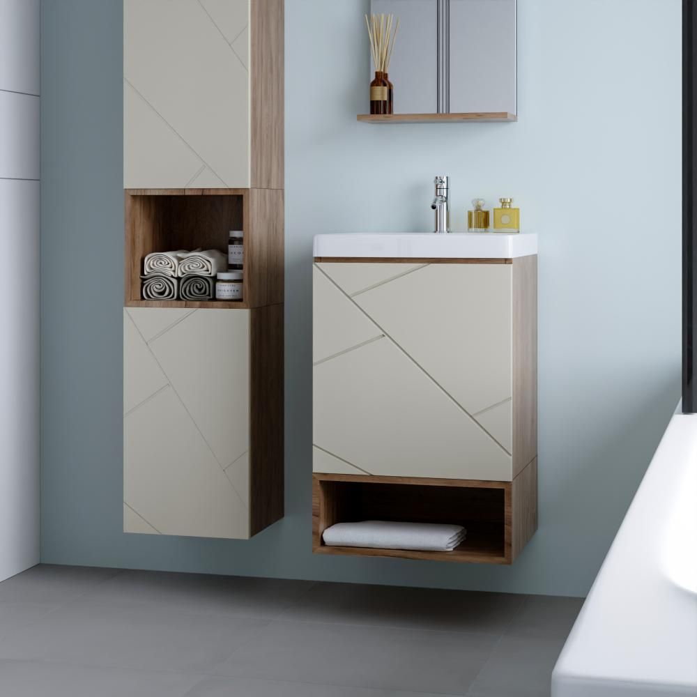 Ниша является дополнительным элементом к тумбе под раковину. Благодаря нише у тумбы появляется дополнительная полка для хранения предметов гигиены, полотенец и других принадлежностей.