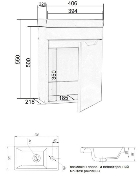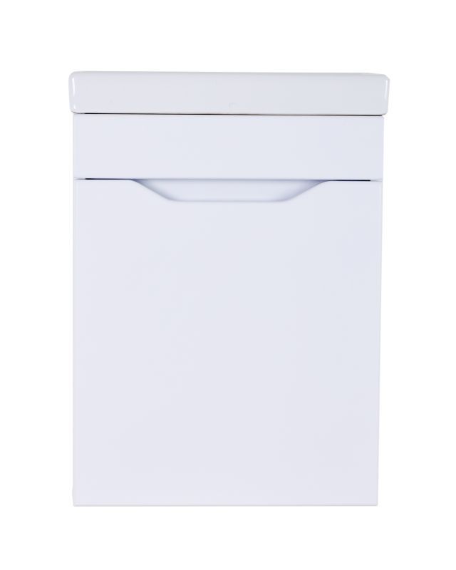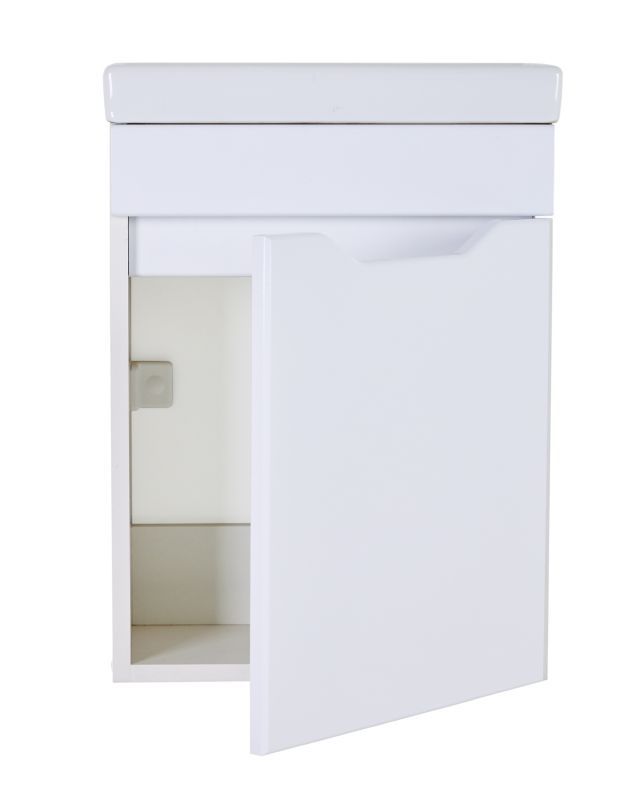 Тумба с раковиной Orange Мини, 40 см, подвесная, белый, Mini-40TUW+RaТумба подвесная с раковиной правосторонняя (петли справа) Orange МИНИ отличается дизайном в стиле минимализм. Предназначена для использования в помещениях с повышенной влажностью. Дверца с механизмом доводчика, обеспечивающим плавное закрывание. Материал фасада МДФ - белый глянец, материал корпуса ЛДСП - белый матовый. Раковина Енисей 40 универсальная, материал фаянс, встроенный слив-перелив. Тумба поставляется в разобранном виде.Комплектация: тумба, раковина, инструкция.