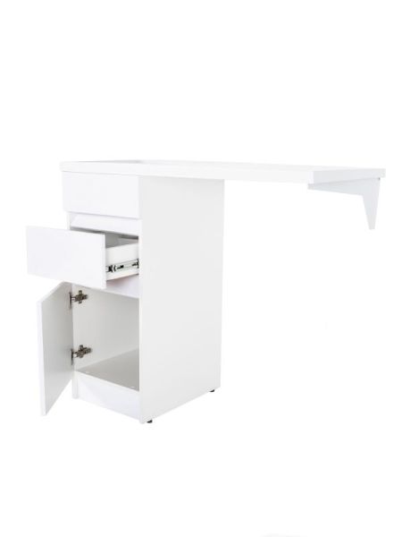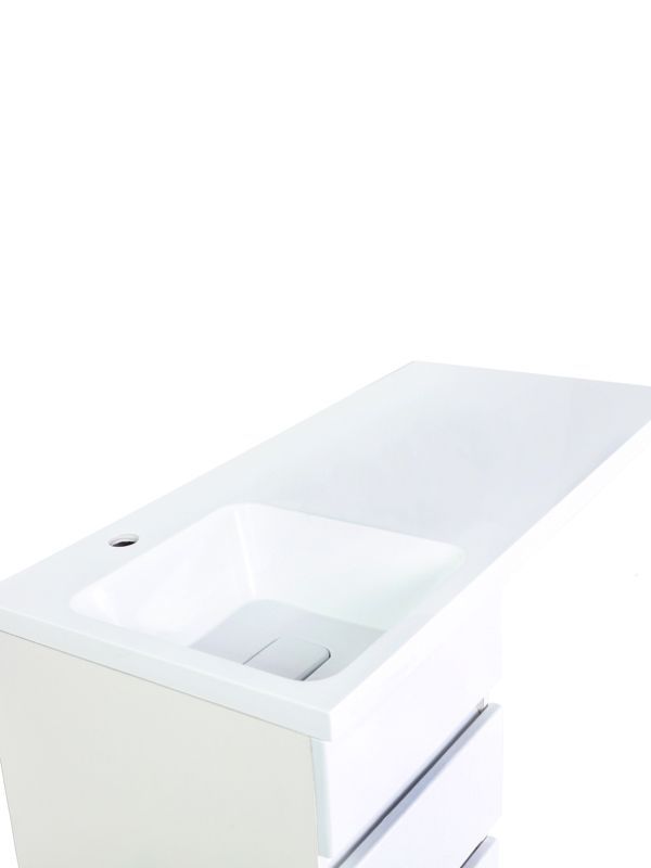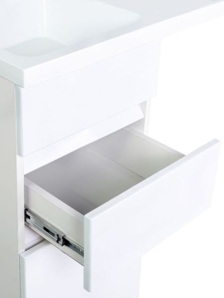 Тумба с раковиной под стиральную машину Orange Optima, левая, белый, ST-40TUW+RALOrange OPTIMA ST-40TUW+RAL Тумба напольная с левой раковиной под стиральную машину. Предназначена для использования в ванных комнатах с повышенной влажностью. Тумба укомплектована выдвижным ящиком, также для хранения предусмотрен нижний отсек с дверцей. Фасад - МДФ в цвете белый глянец, покрытие пленка ПВХ. Корпус - ЛДСП в цвете белый глянец. Раковина с одним отверстием под смеситель (материал - искусственный камень).В комплекте ножки подпятники 4 шт (регулировка по высоте до 10 мм) и кронштейн для крепления крыла раковины.