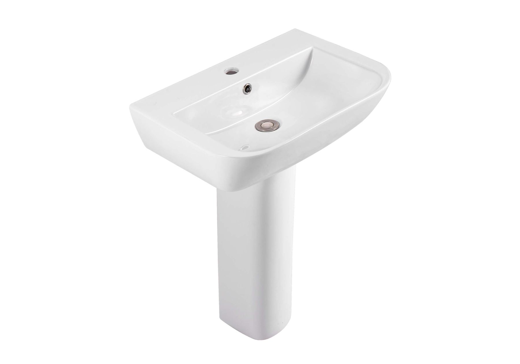 Подвесная раковина может крепиться на стену или устанавливаться на пьедестал или полупьедестал по вашему желанию. Раковина для ванной на пьедестале — это элегантное и функциональное решение, позволяющее разгрузить пространство, идеально для оформления интерьера ванных комнат в классическом стиле. Подходит для использования как в частных квартирах и домах, так и для санузлов общего пользования. Элегантная прямоугольная чаша раковины выполнена из 100% санитарного фарфора, покрытого прочной глазурью, легко очищается обычными бытовыми средствами и сохраняет белизну на протяжении всего срока службы. Пьедестал, выполненный в том же стиле, что и чаша, придает раковине завершенный вид. Он не только поддерживает конструкцию, но и скрывает сантехнические коммуникации. Установка такой раковины позволяет сэкономить пространство в ванной комнате, придавая ей стильный и аккуратный вид. Раковина на пьедестале — это отличный выбор для тех, кто ценит сочетание эстетики и практичности в дизайне интерьера.