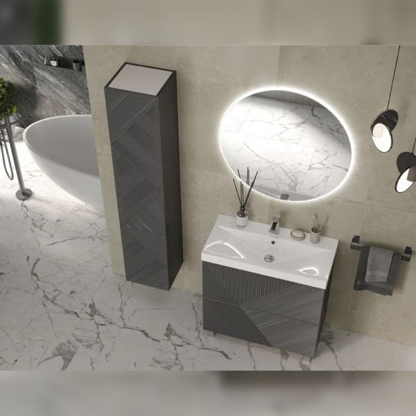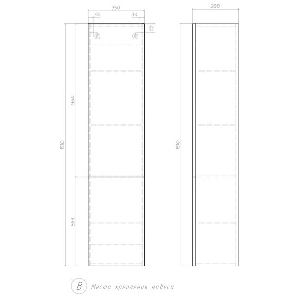 Пенал (35см) Velvex Edge pp.EDG.35 графит, графит: 3 стеклянные полки за 2-мя распашными дверцами, петли с доводчиками, открывание левое/ правое.