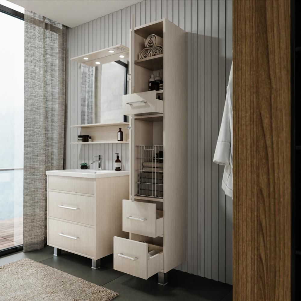 Шкаф-пенал для ванной комнаты – это стильное решение, которое гармонично вписывается в современный интерьер. Его элегантные линии и аккуратные формы создают атмосферу чистоты и порядка, что особенно важно в таком интимном пространстве. Изготовленный из качественных влагостойких материалов, этот шкаф обеспечивает долговечность и надежность, даже в условиях повышенной влажности.