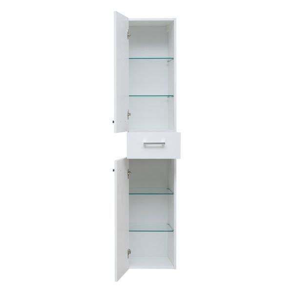 Пенал Dreja.Rus 35, 2 дверки, 1 ящик, стеклянные полки, белый глянец