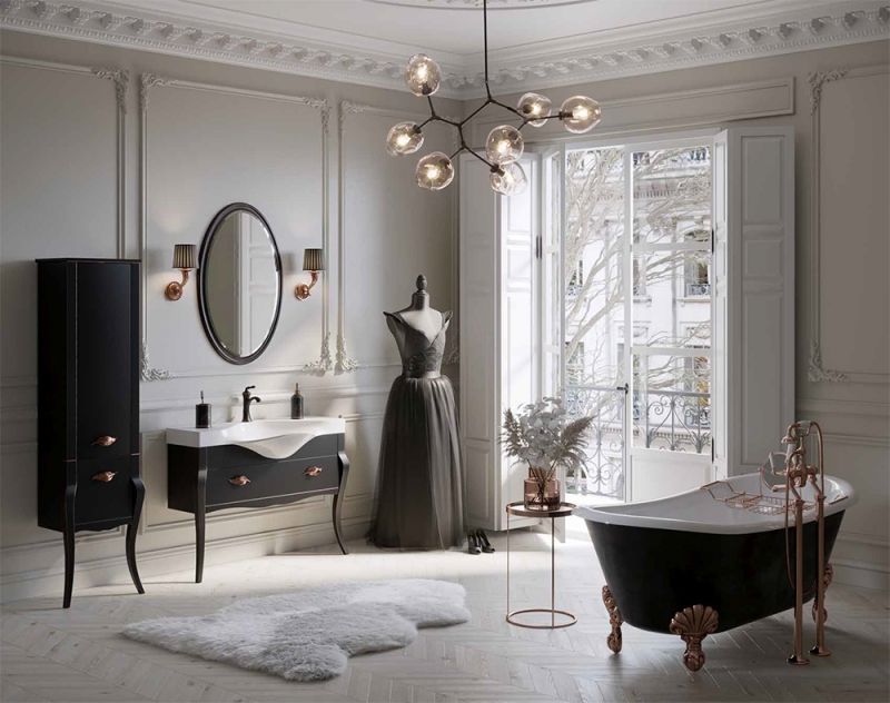 Пенал напольный Clarberg Borgia BOR0548BLK 48x182см чёрный/патина медь