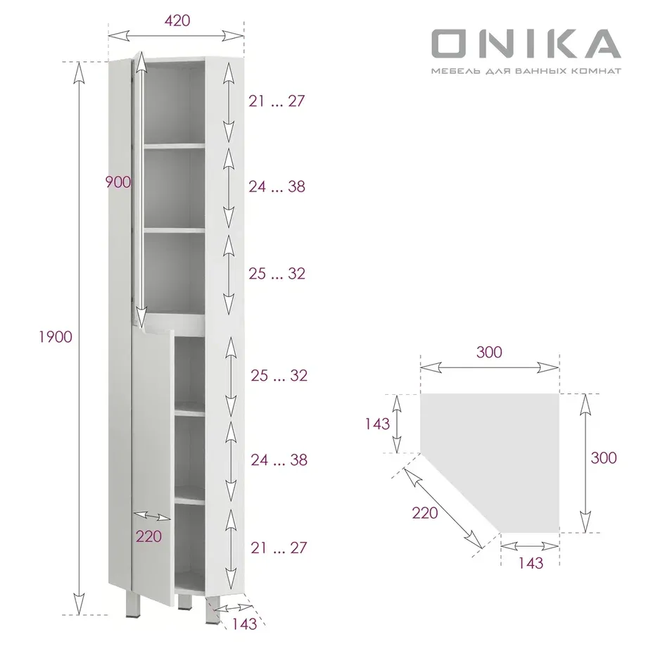Пенал напольный Onika Айленд 403082 угловой 30см белый