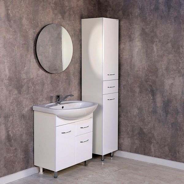Напольный пенал для ванной комнаты с корзиной для белья Onika МОДЕРН 32, благодаря простому минималистичному дизайну, белому глянцевому фасаду, подойдет под любой интерьер ванной комнаты.