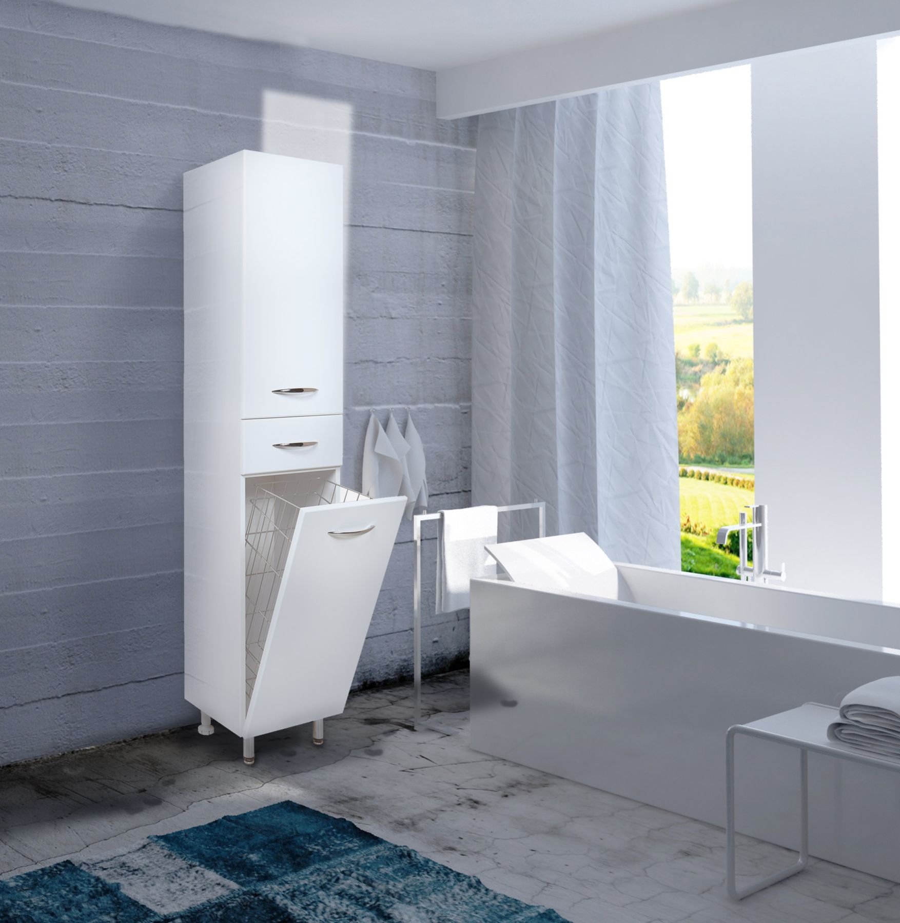 Напольный пенал для ванной комнаты с корзиной для белья Onika МОДЕРН 32, благодаря простому минималистичному дизайну, белому глянцевому фасаду, подойдет под любой интерьер ванной комнаты.