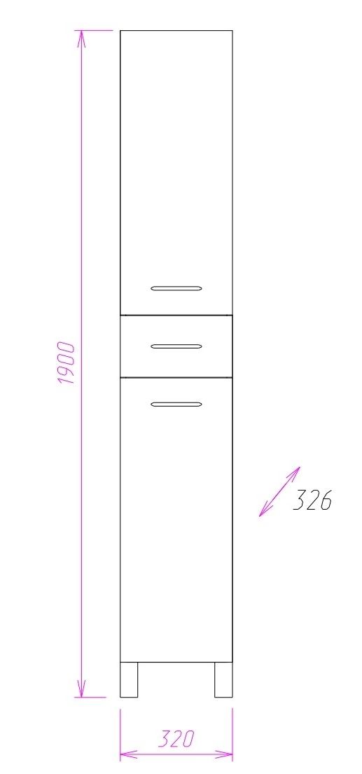 Большое отделение сверху за распашной дверцей с механизмом плавного закрывания, небольшой ящик с направляющими полного выдвижения посередине и отделение с корзиной для белья внизу шкафа обеспечит бережное хранение всех необходимых в ванной комнате вещей. Размер бельевой корзины: 250*265*640.