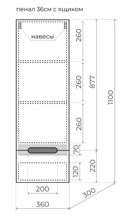 - Габариты (ШхВхГ): 360х1100х300 мм.