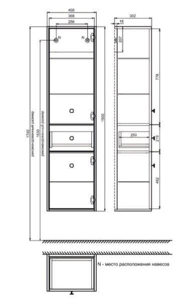 Пенал подвесной IDDIS Torr TOR40D0i97 40см тёмно-серый купить
