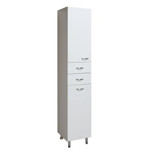 Шкаф-колонна напольный с двумя отделениями и выдвижными ящиками. Верхнее отделение с распашной дверкой и одной внутренней полкой. Нижнее отделение - с откидной дверью. Комплектуется полкой и корзиной для белья. Ящики - на шариковых направляющих, петли со встроенным доводчиком, ручки - 4 шт, ножки хром - 2 шт, ножки пластик -2шт.