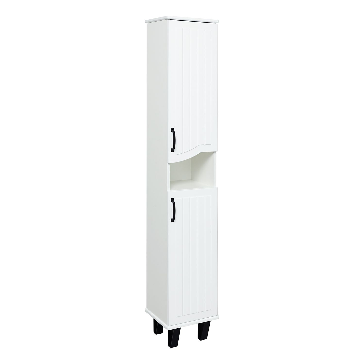 Шкаф-колонна напольный с двумя распашными дверками и открытой нишей посередине. В верхнем и нижне... Подробнее
