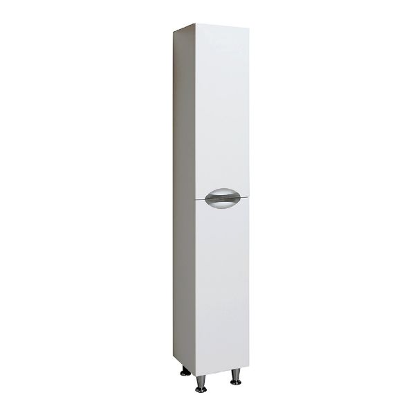 Шкаф-колонна напольный универсальный с двумя распашными дверками. В нижнем и верхнем отделениях - по две внутренние полки. Комплектация: петли с доводчиком, ручки врезные - 2шт, ножки хром - 2шт, ножки пластик - 2шт.