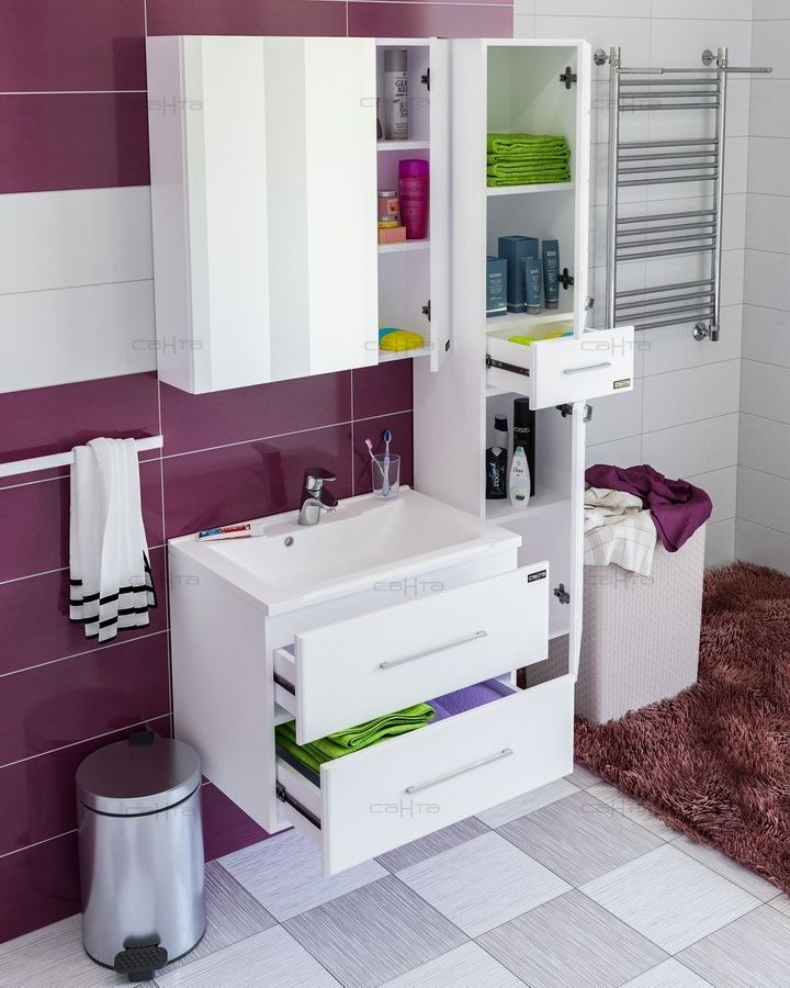 Шкаф-пенал СанТа отличное решение для создания комфортной атмосферы в любой ванной комнате. Подвесной способ установки дает возможность не только визуально увеличить пространство, но и обеспечивает быстрый и удобный доступ для уборки.В производстве используют только качественные влагостойкие материалы (ВЛДСП), в составе которых полностью отсутствуют опасные вещества. Серия Вегас отличается превосходным дизайном с соблюдением всех существенных элементов современного стиля. Основным цветом, в котором выполнен шкаф-пенал СанТа является белый, безупречно впишется в любой дизайн проект. Шкаф-пенал предусматривает удобную и вместительную систему хранения, состоящую из дверей.Страной бренда СанТа является Россия, все товары производятся с выполнением соответствующих стандартов качества, что позволяет быть полностью уверенными в долговечности и надежности. Шкаф-пенал СанТа поможет сделать уютным любой интерьер и создать идеальную ванную комнату.