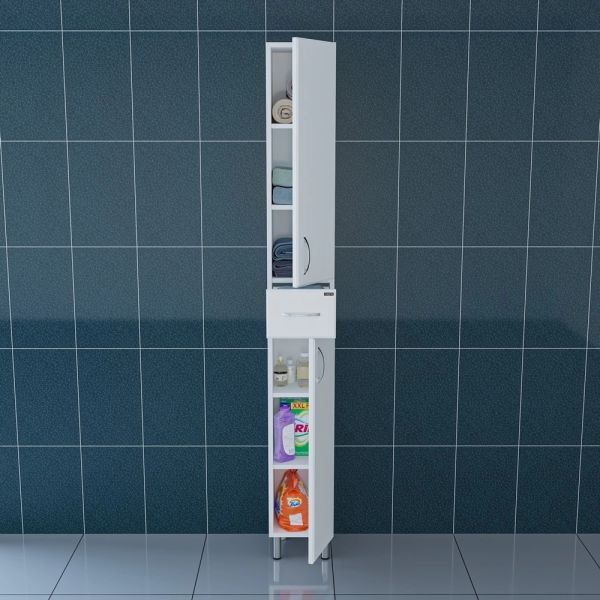 Шкаф-пенал СанТа отличное решение для создания комфортной атмосферы в любой ванной комнате. Напольный способ установки производится непосредственно на пол, при этом конструкция максимально устойчива при серьезных физических нагрузках. В производстве используют только качественные влагостойкие материалы (ВЛДСП), в составе которых полностью отсутствуют опасные вещества. Серия Вегас отличается превосходным дизайном с соблюдением всех существенных элементов современного стиля. Основным цветом, в котором выполнен шкаф-пенал СанТа является белый, безупречно впишется в любой дизайн проект. Шкаф-пенал предусматривает удобную и вместительную систему хранения, состоящую из дверей.Страной бренда СанТа является Россия, все товары производятся с выполнением соответствующих стандартов качества, что позволяет быть полностью уверенными в долговечности и надежности. Шкаф-пенал СанТа поможет сделать уютным любой интерьер и создать идеальную ванную комнату.